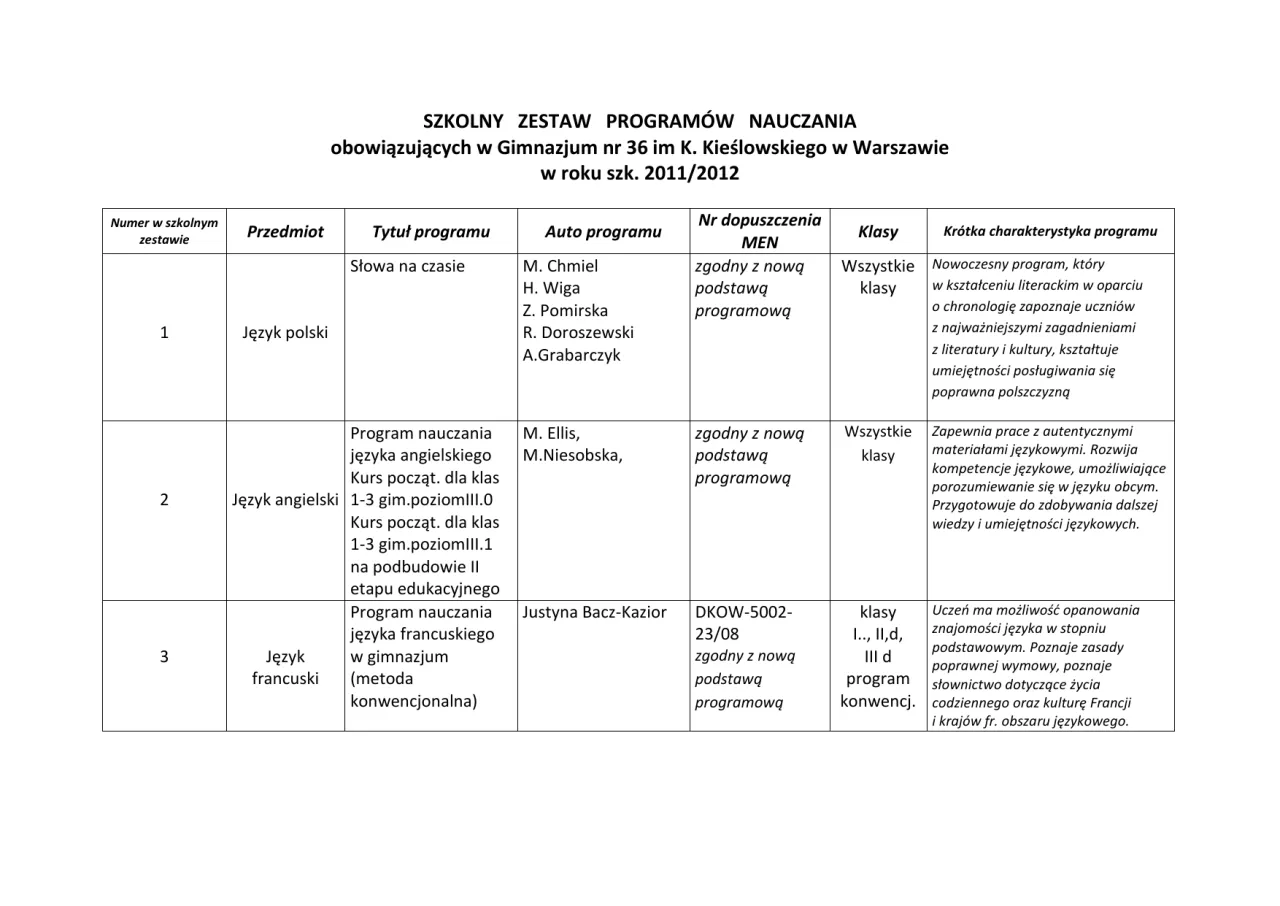 - Może być dostosowywany do potrzeb uczniów i specyfiki szkoły