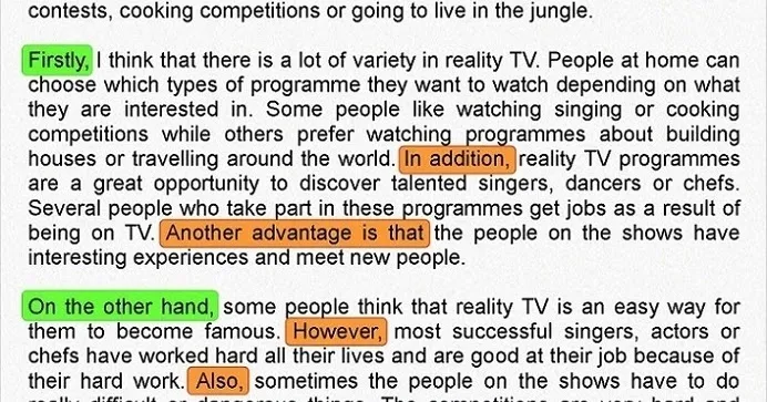"What is more" oraz "Another positive aspect" to świetne zwroty do kontynuowania argumentacji. Pamiętajmy o wspieraniu każdego argumentu odpowiednim przykładem lub wyjaśnieniem.